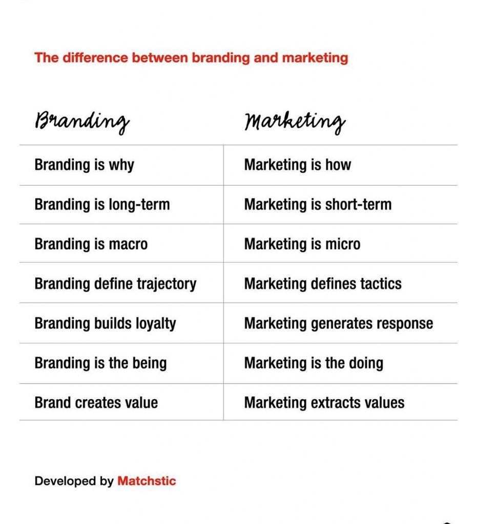 Marketingul, în contextul acestei comparații, se referă la instrumentele și metodele pe care le folosești pentru a livra mesajul brand-ului tău. Dacă brandingul se bazează pe întrebarea de ce?, marketingul este despre cum?. Cum să transmiți către consumatori identitatea companiei și să îi faci să îți fie clienți fideli?