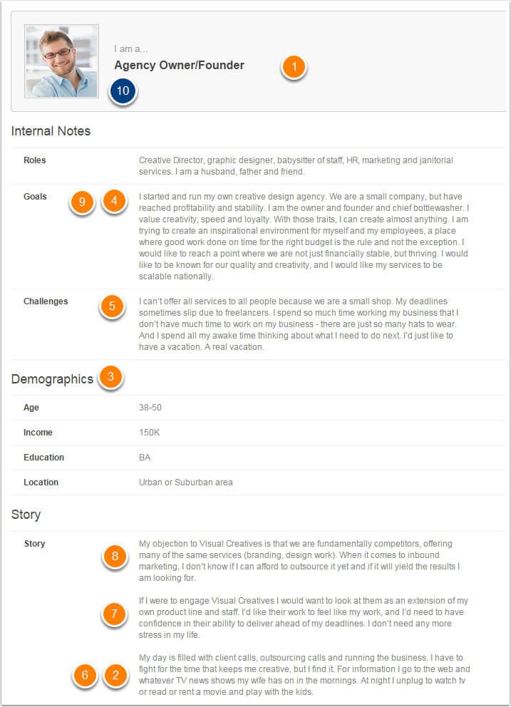 Îți recomandăm să atașezi și o imagine acestei descrieri, ca să devină o “persoană reală”, pe care o poți vizualiza atunci când scrii copy-uri sau dezvolți strategii noi.