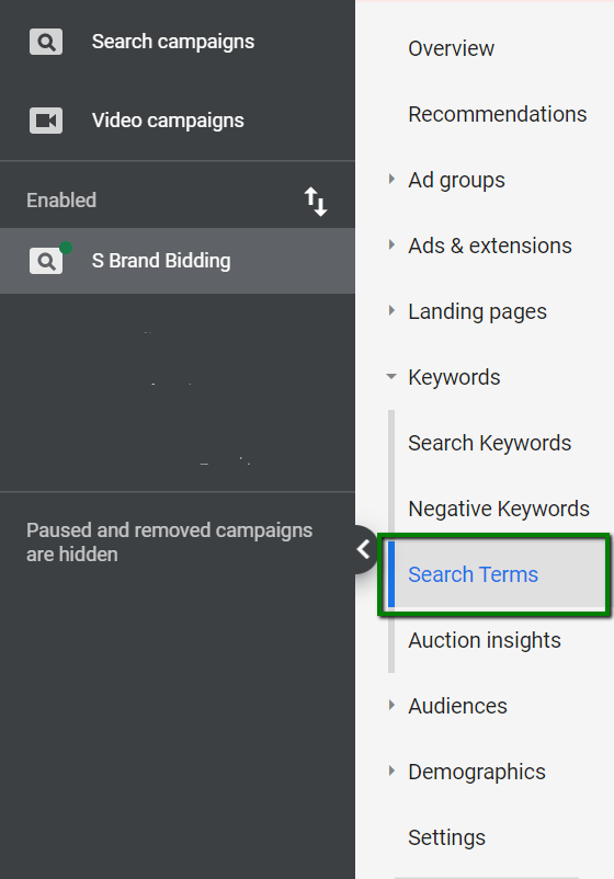 3. Din meniul care se deschide dați click pe Search Terms